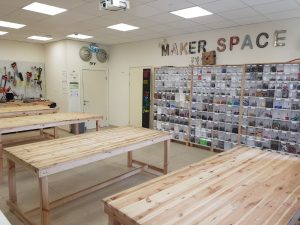 חדר מייקרים (Makerspace) הוא המרחב השונה והלא שגרתי בבית הספר, שבולט בצבעוניותו ובכך שאינו מנסה להדמות לכיתת לימוד הרגילה.